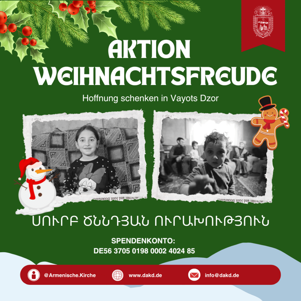 Սուրբ Ծննդյան ուրախություն 2025 Weihnachtsfreude 2025: Հույս նվիրել Hoffnung teilen Die Diözese der Armenischen Kirche in Deutschland lädt mit der Aktion „Weihnachtsfreude 2025“ zum Mitmachen ein. Start der Aktion ist am 1. Hisnak, 16. November 2025. […]
